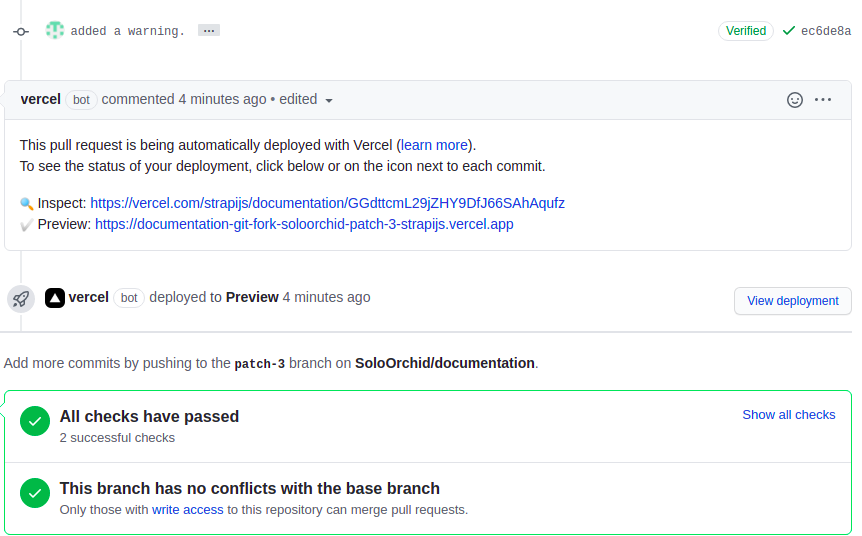 when i try to contribute to the pages in the documentation, my pull requests are being handled automatically and vercel gives a 404 on the links it shows.