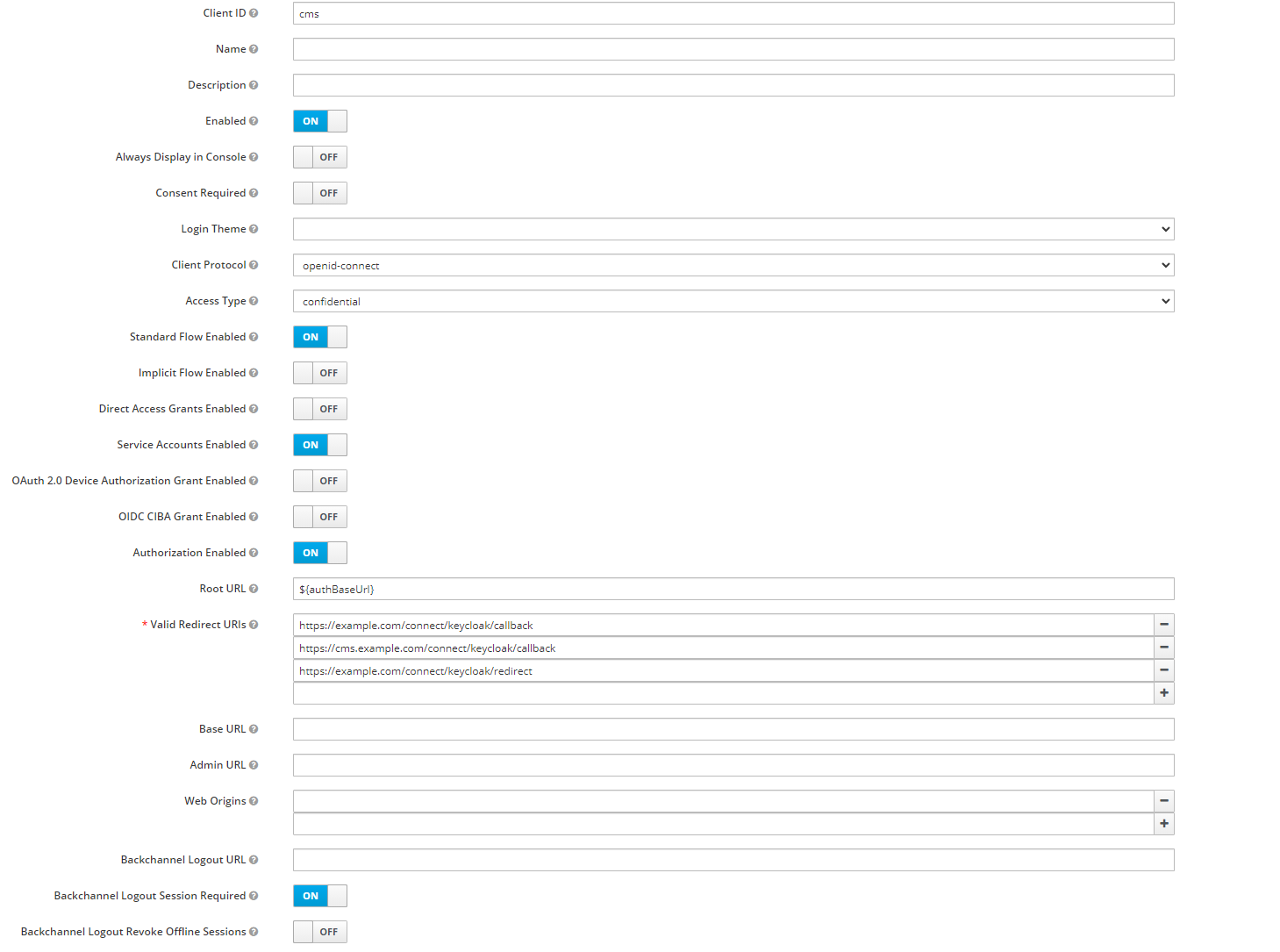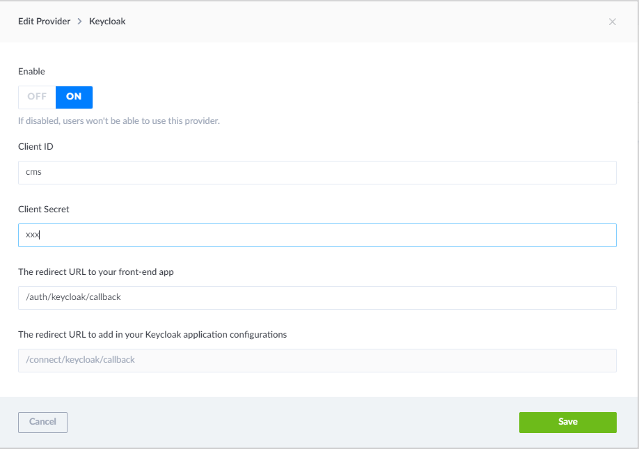 Redirect URL: https://cms.example.com/auth/keycloak/callback