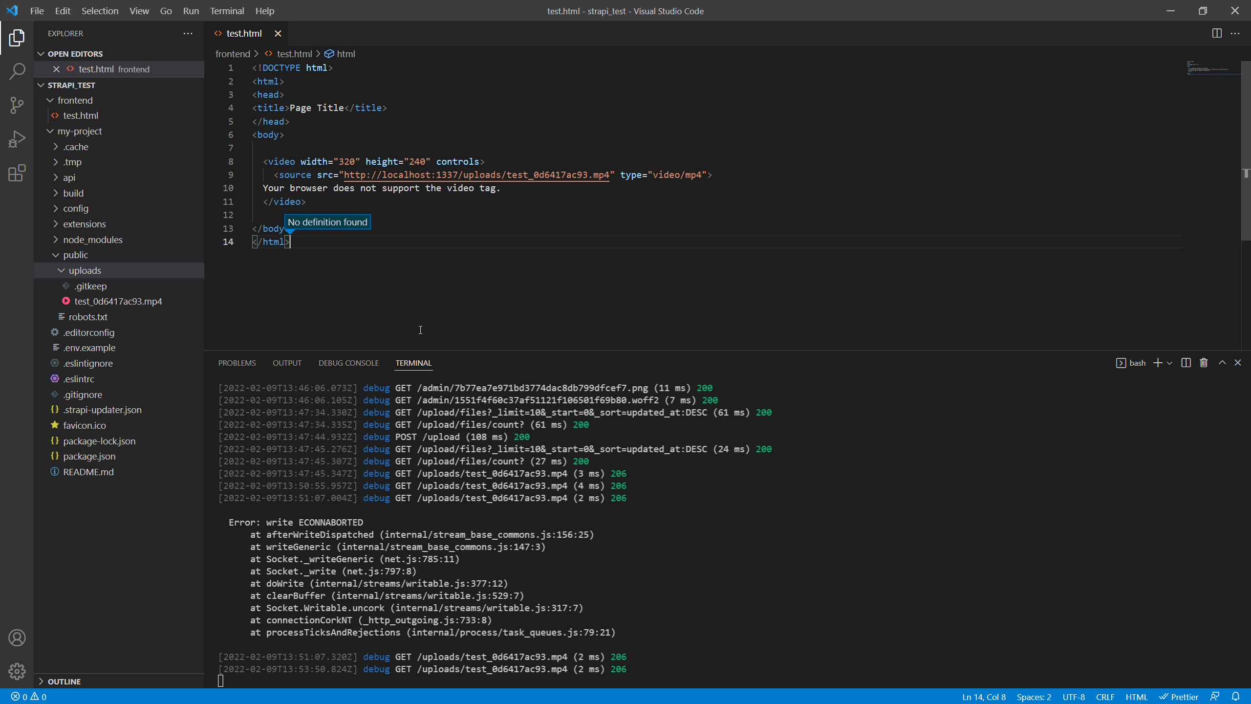Opend a thread in the forums: https://forum.strapi.io/t/econnreset-and-econnaborted-triggered-by-mp4-after-reloading-browser/15473