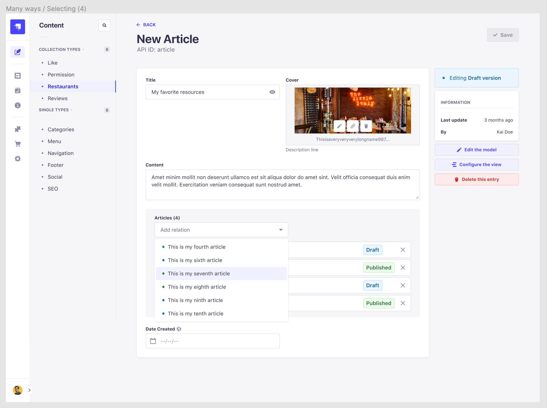 This summary moves relational fields from the sidebar into the main view of the content-manager. Fields can now be resized as any other field, which should give content-editors more a better editing experience.
