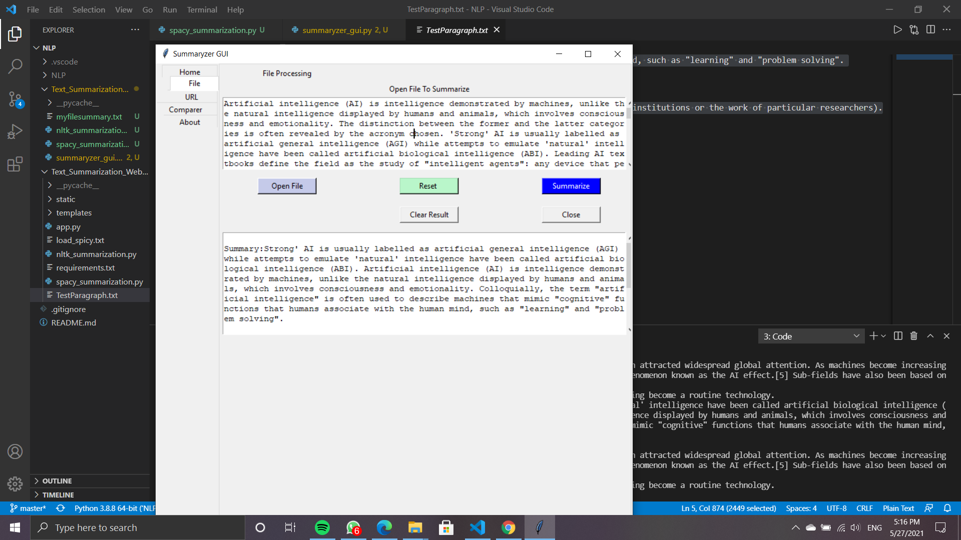 NLP_Projects I have made some NLP Projects. Text Summarization Web App Text Summarization GUI using Tkinter