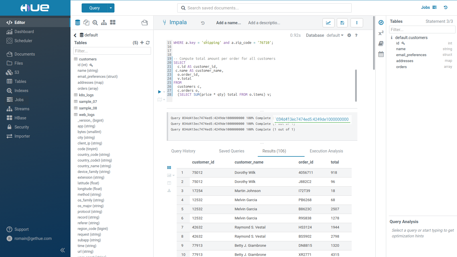 Many companies and organizations use Hue to quickly answer questions via self-service querying e.g.: