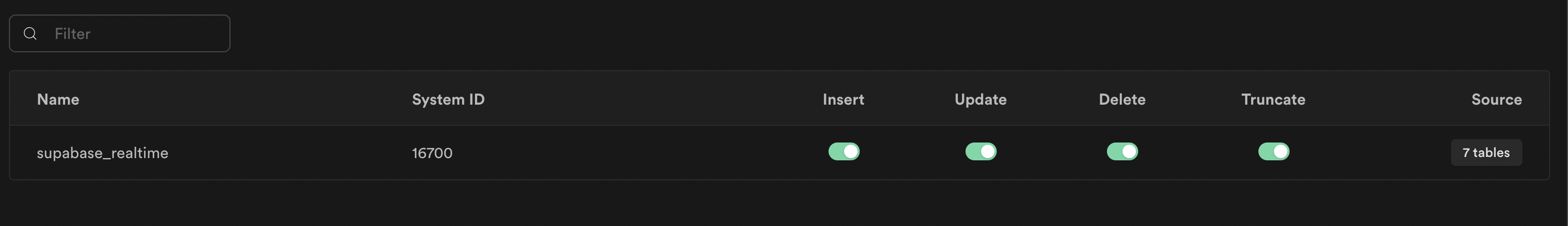 realtime only emitting DELETE events (no INSERT or UPDATE)