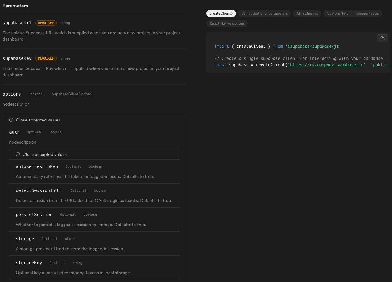 autoRefreshToken,detectSessionInUrl, andpersistSessiondefaults to true)