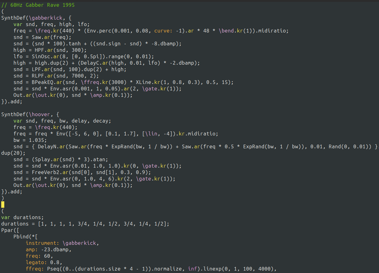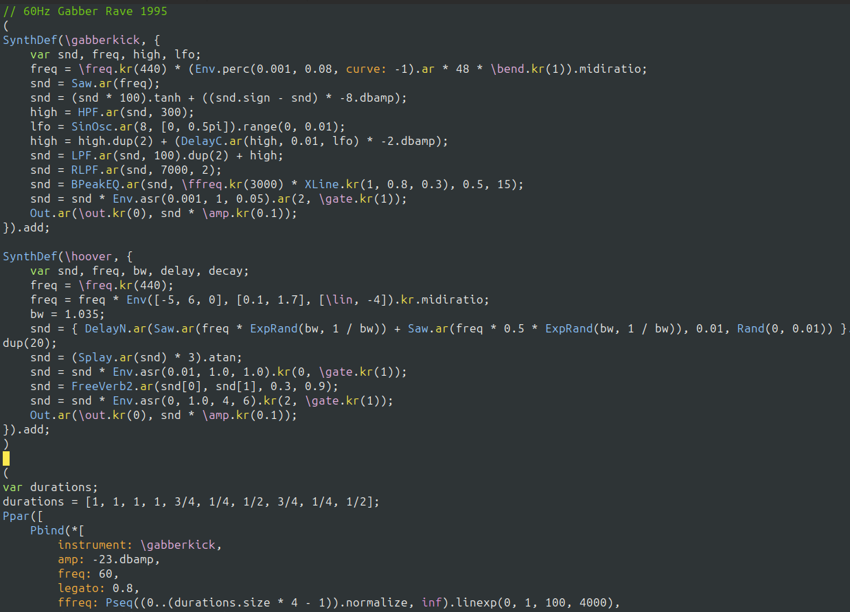 I have scel installed. Sclang extension I don't have installed as it didn't work for me. Can someone tell me how the syntax highlighting should correctly look like?