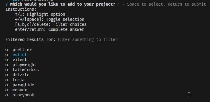 I think the issue is that general tools will always rank above Svelte-specific tools. E.g. I imagine more people will want to use mdsvex than storybook. We'd probably want to order by adder usage, but have no way to get that data unless we publish a package for each individual adder or add some kind of telemetry The other tough thing is that it becomes hard to locate an item you want in the list as you don't know where it might appear. |