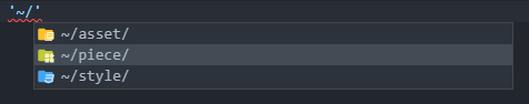 This is how it happens in the ts file when you select one of the above ```ts import {} from '~/piece/' ``` But this is what happens in the svelte file ```svelte <script lang="ts"> import {} from '~/~/piece/' </script> ```
