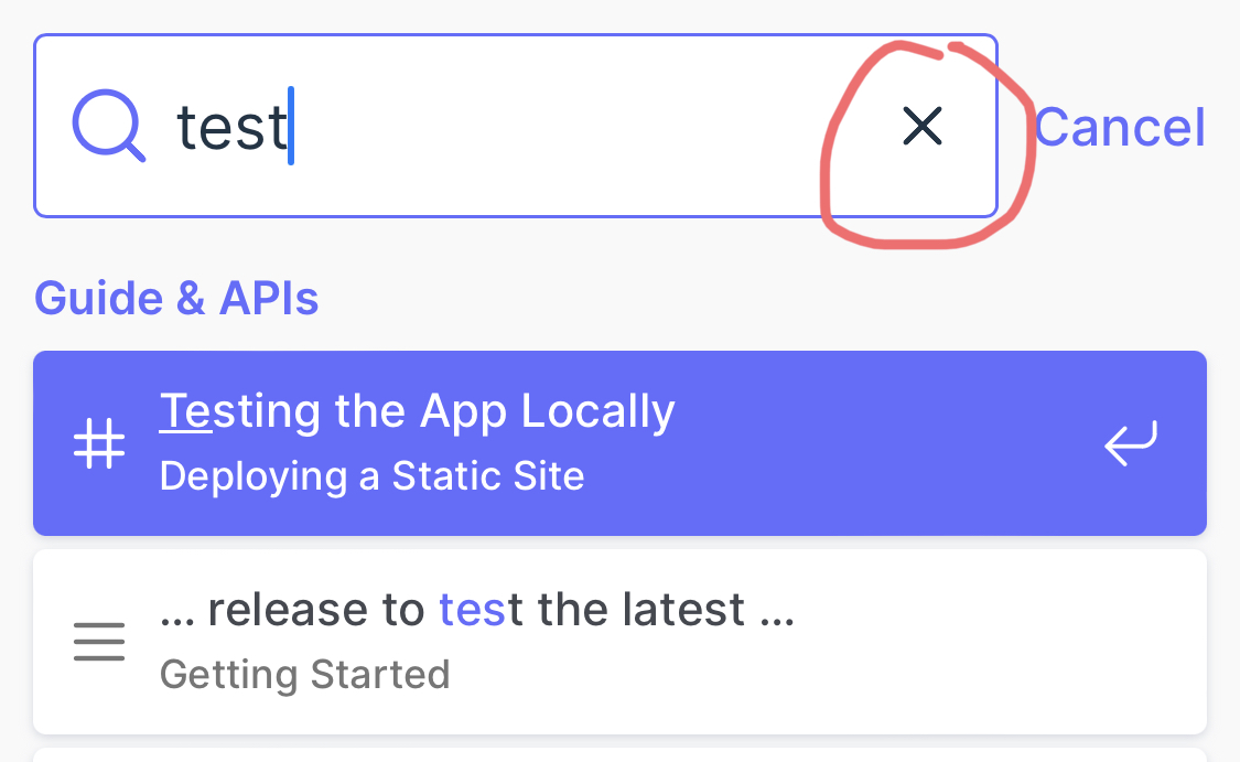 * The current “close search” button for kit.svelte.dev can be easily confused for a clear search button.