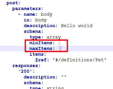 As I used v1.0.22, I found the parser can't analyze 'minItems' and 'maxItems' of array properties. the structure example show as follow