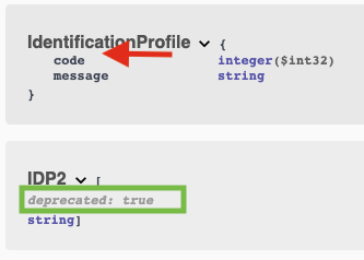 As a comparison, in Models: IDP2, the Array Model properly displays deprecated: true