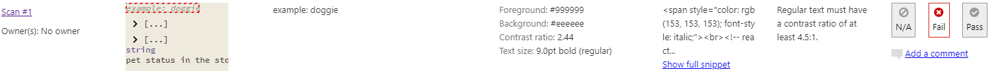 Accessibility testing was completed using internal tools as well as Google Accessibility Extension (https://chrome.google.com/webstore/detail/accessibility-developer-t/fpkknkljclfencbdbgkenhalefipecmb) and aXe Accessibility Engine (https://www.deque.com/products/axe/).