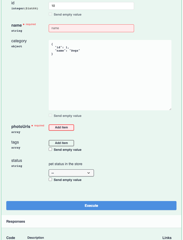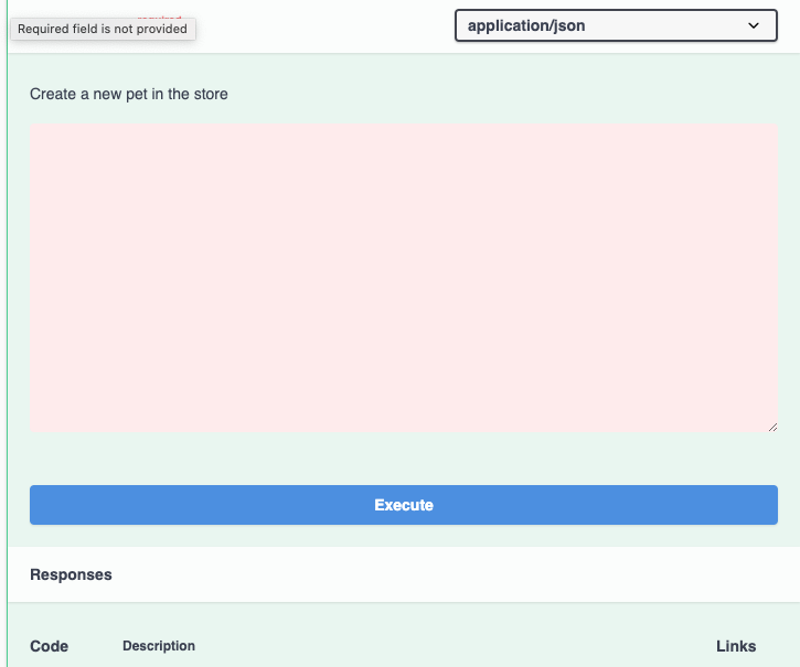 For OAS3 Request Body, if required fields are empty, user should not be able to "Execute" and get a response. In addition, the missing required fields should be highlighted in Red.