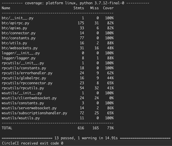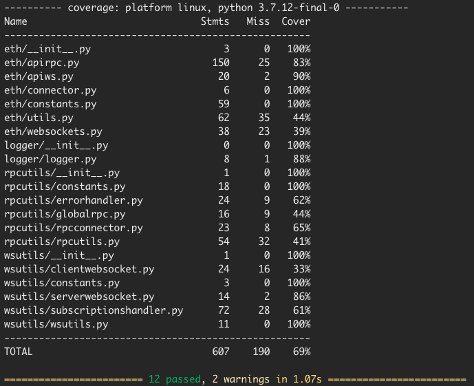 Packages used for tests: pytest and coverage