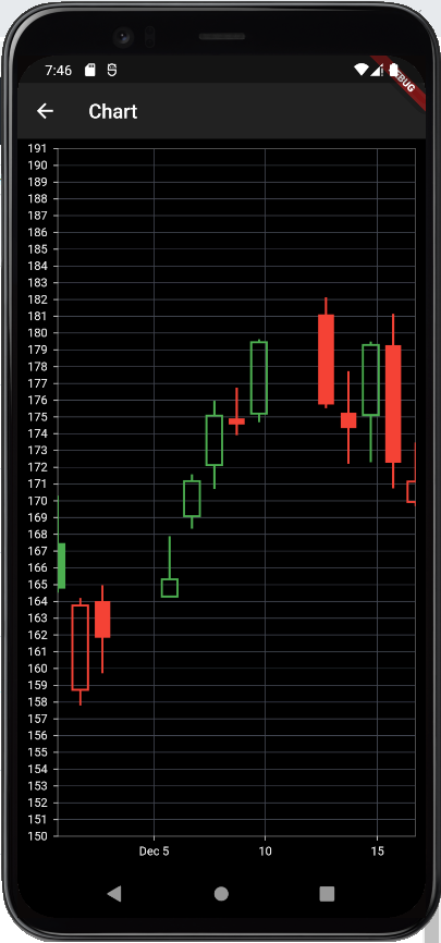 Hi, I have a chart which is plotting AAPL for the last 2 weeks with a daily candle resolution. It is working beautifully, except for one thing. The weekends and holidays leave empty gaps in the chart. I would like my app to be continuous such that the weekends and holidays which have no data are simply not plotted, which would make my x-axis a bit weird where it would skip days.