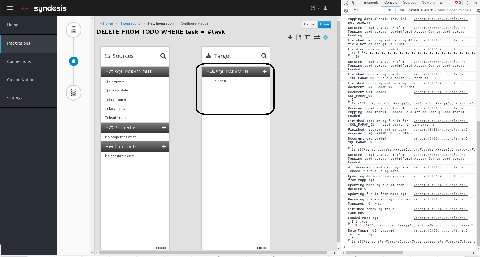 if I put e.g. DELETE FROM TODO WHERE task LIKE ':#task' as target connection action.