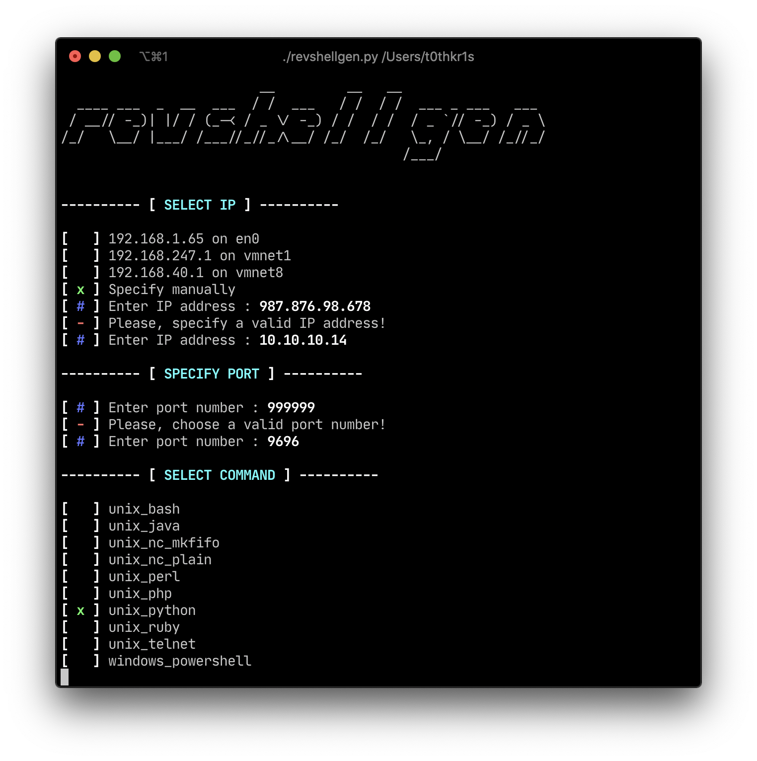 python3 revshellgen.py # or python3 revshellgen_cli.py- Python 3.6 or higher