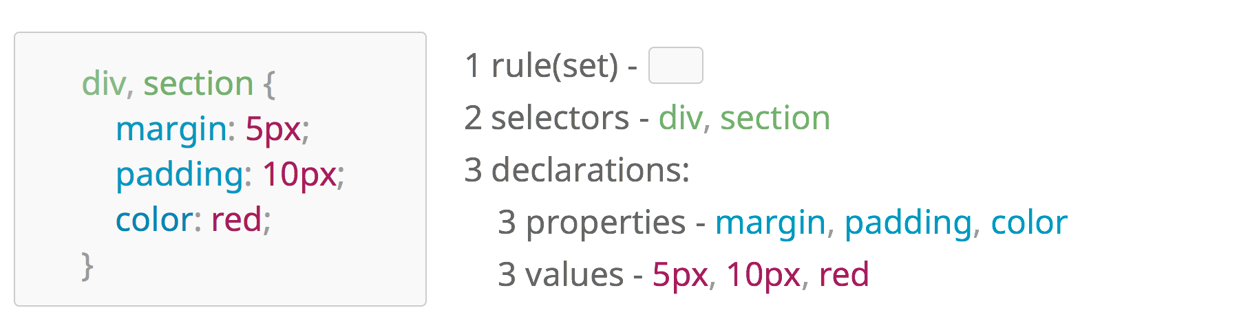 $ stylestats https://t32k.me/wisteria/css/wisteria.cssIf you specify an HTML page, StyleStats will analyze stylesheets and style elements.