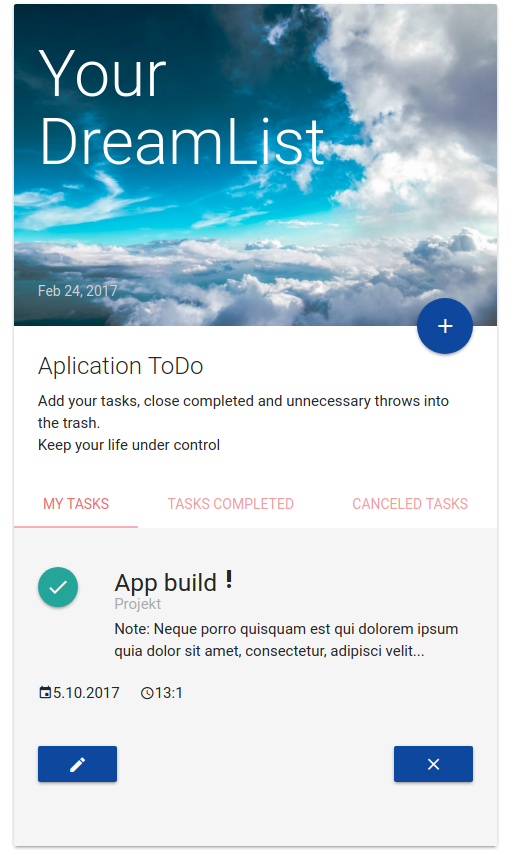 ToDoApp This is an application for creating a task list. Exercises designed to build applications and learn JavaScript This is an application screen