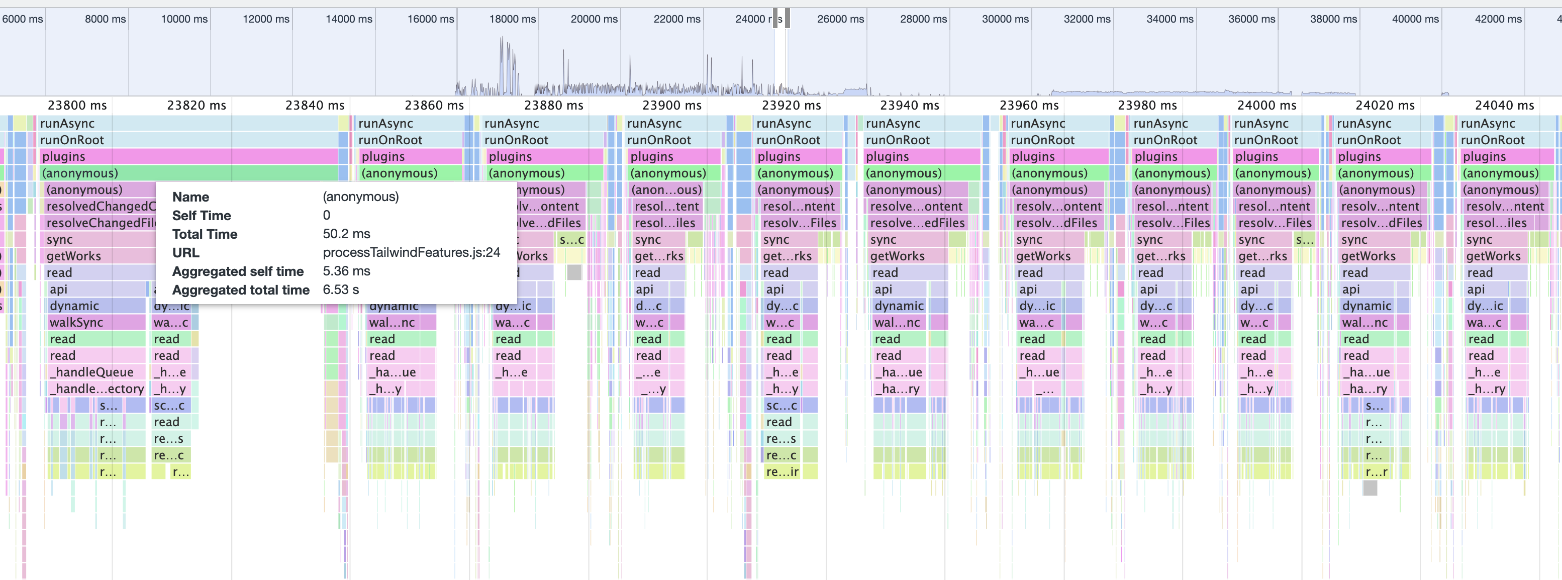 I created a repo with the minimal setup here https://github.com/axelhzf/nuxt-tailwind-performance Running the project with the debug enabled ( |