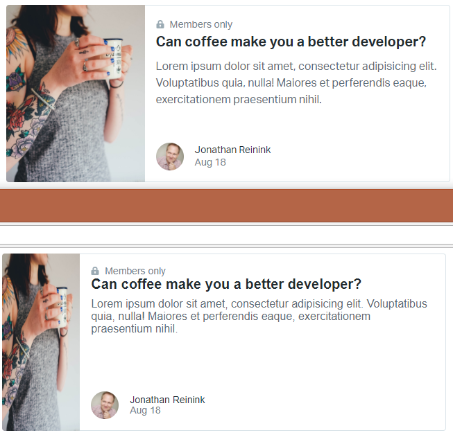 after the news of laravel news I started to try out Tailwind CSS. At the moment I try to create a horizontal card after the example from your site. For me every image looks a bit strange what I am using on the left side. The image from your site looks a bit strange aswell for looking if I made an error.