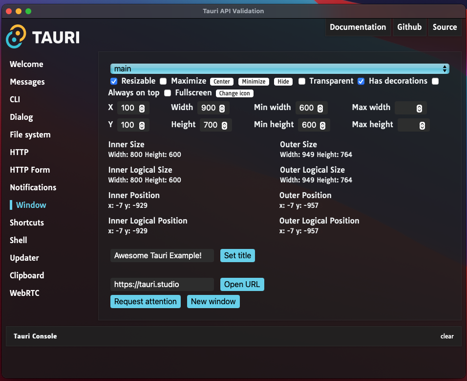 Also I noticed the transparent checkbox does not work, and resizable only works after changing it at least once.