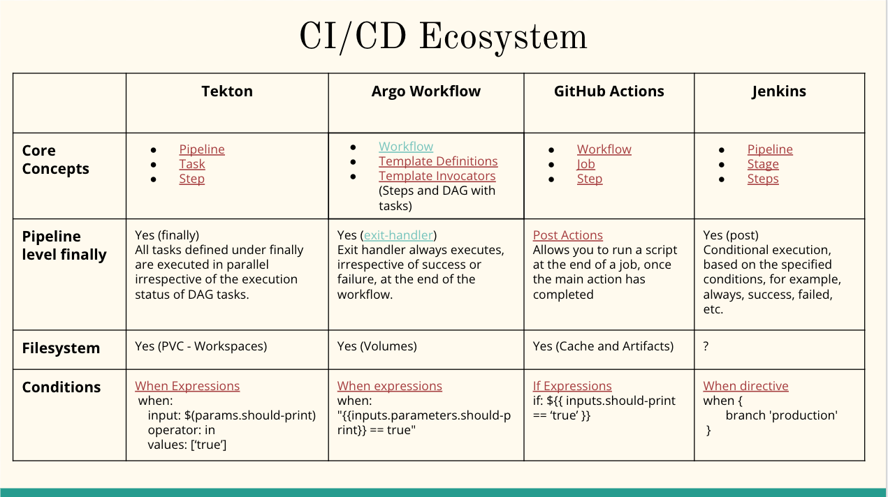 This table is misleading and may confuse users while comparing Tekton with the other CI/CD systems.
