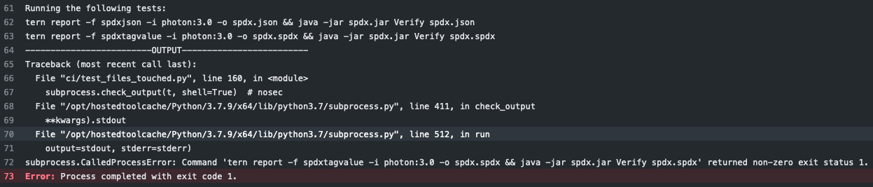 As development increases for Tern, it is getting harder to maintain the generation of valid SPDX documents for container images. This commit enables CI checks for the SPDX documents that Tern produces to make sure the documents are valid. Resolves tern-tools#713 Signed-off-by: Rose Judge <rjudge@vmware.com>