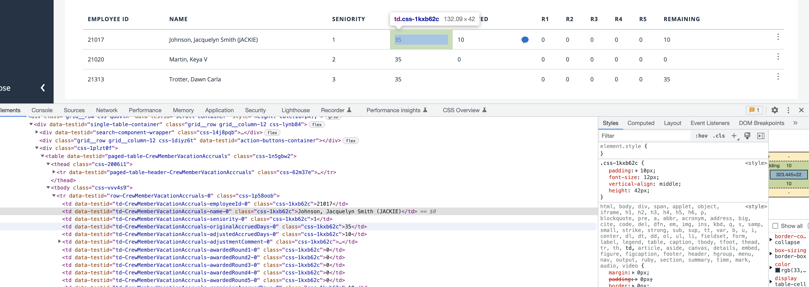 <td data-testid="td-CrewMemberVacationAccruals-name-0" class="css-1kxb62c">