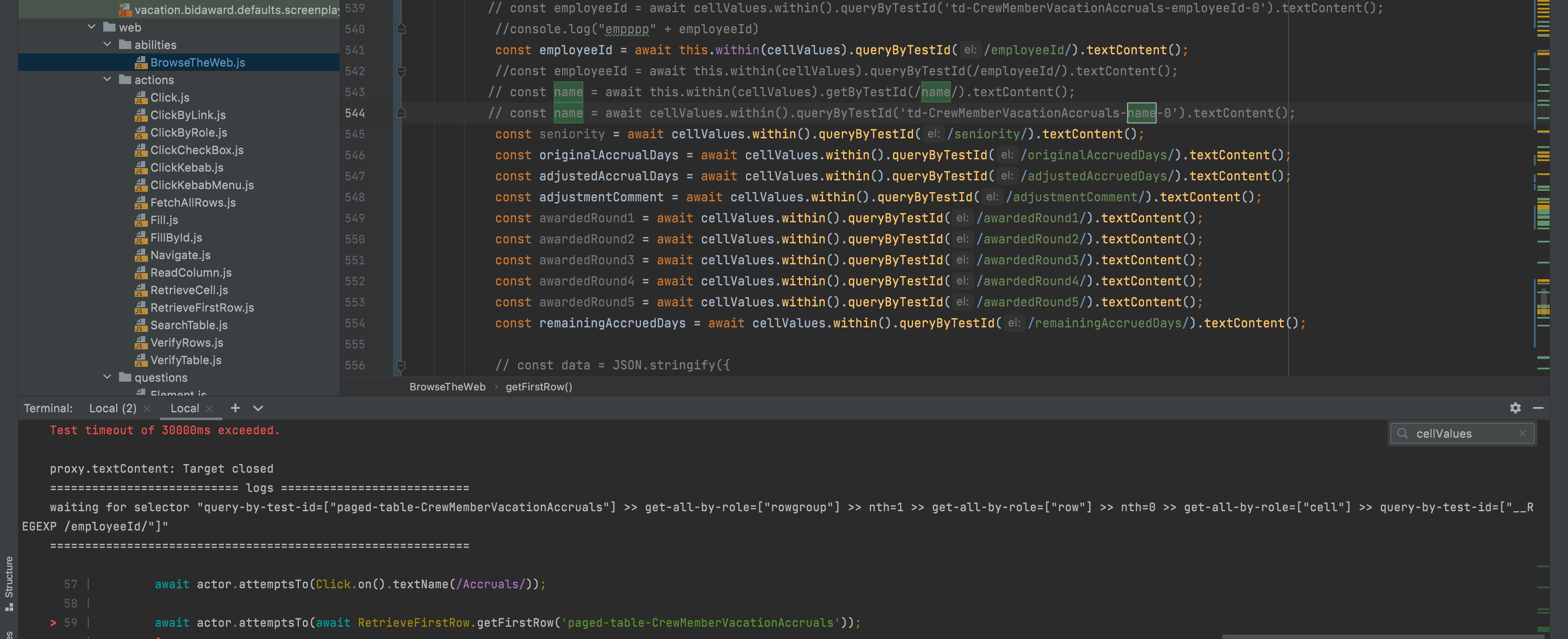 const name = await cellValues.within().queryByTestId('td-CrewMemberVacationAccruals-name-0').textContent();