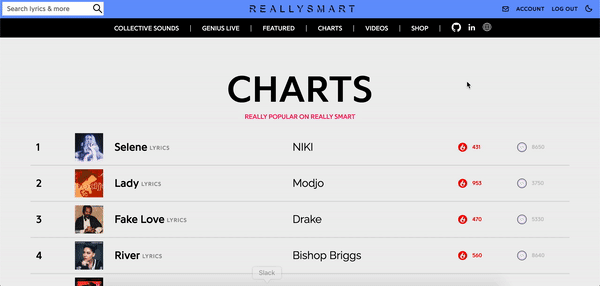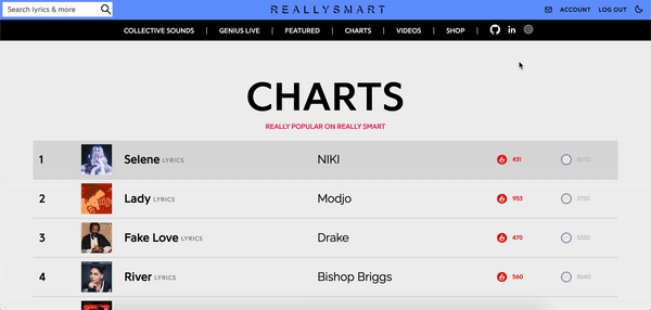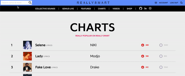 Really Smart is a clone of Genius created by Eddie Kim. The website shows the lyrics of tracks and allows users to annotate parts of the lyrics in order to explain what those parts may actually mean. The project is dedicated to DMX, who passed away on April 9, 2021.