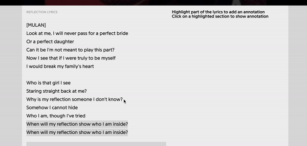 Annotations can be created by highlighting unannotated text with the cursor and saving the notes. Created annotations can also be edited or deleted. Each action will update live.