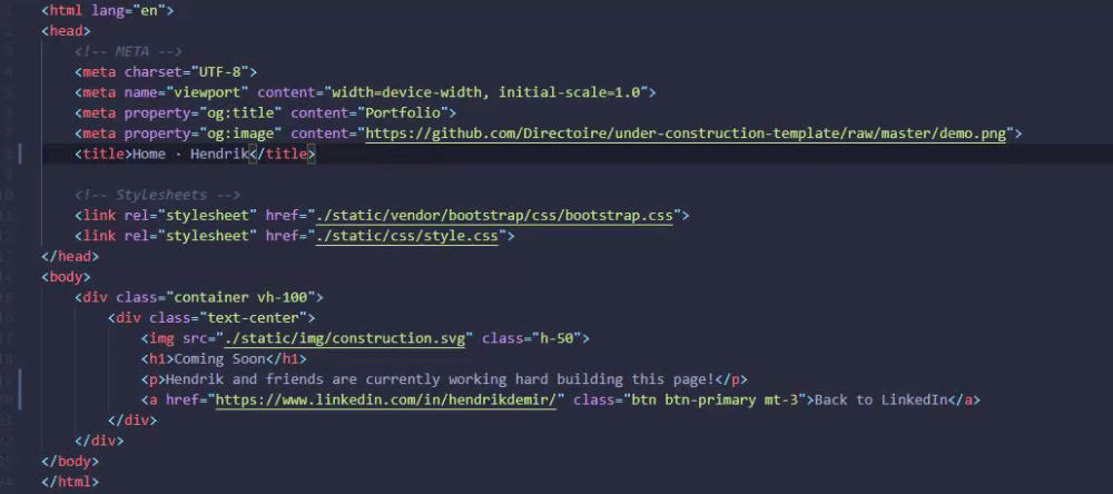 This is a very simple template that you can use to show when you are still working on your website. You can completely modify it to your liking and use it in whatever way you like. Contributions are welcome as there might be small and cool features that could be implemented in the feature.