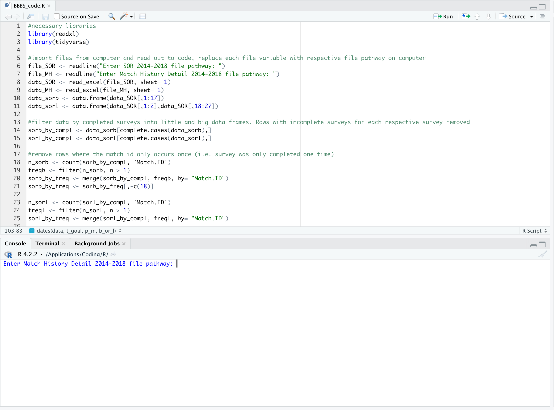 Afterwards, your work is done! The program will now sift through the data to produce CSV files (one for the big, one for the little) of all cases with completed surveys at both the baseline and the target time interval, along with whether or not a racial or ethnic match occured in each case.