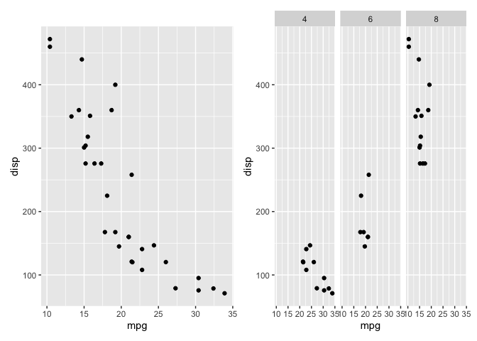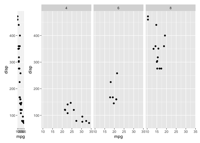p1 + p2p3 <- p1 + facet_wrap(~cyl)