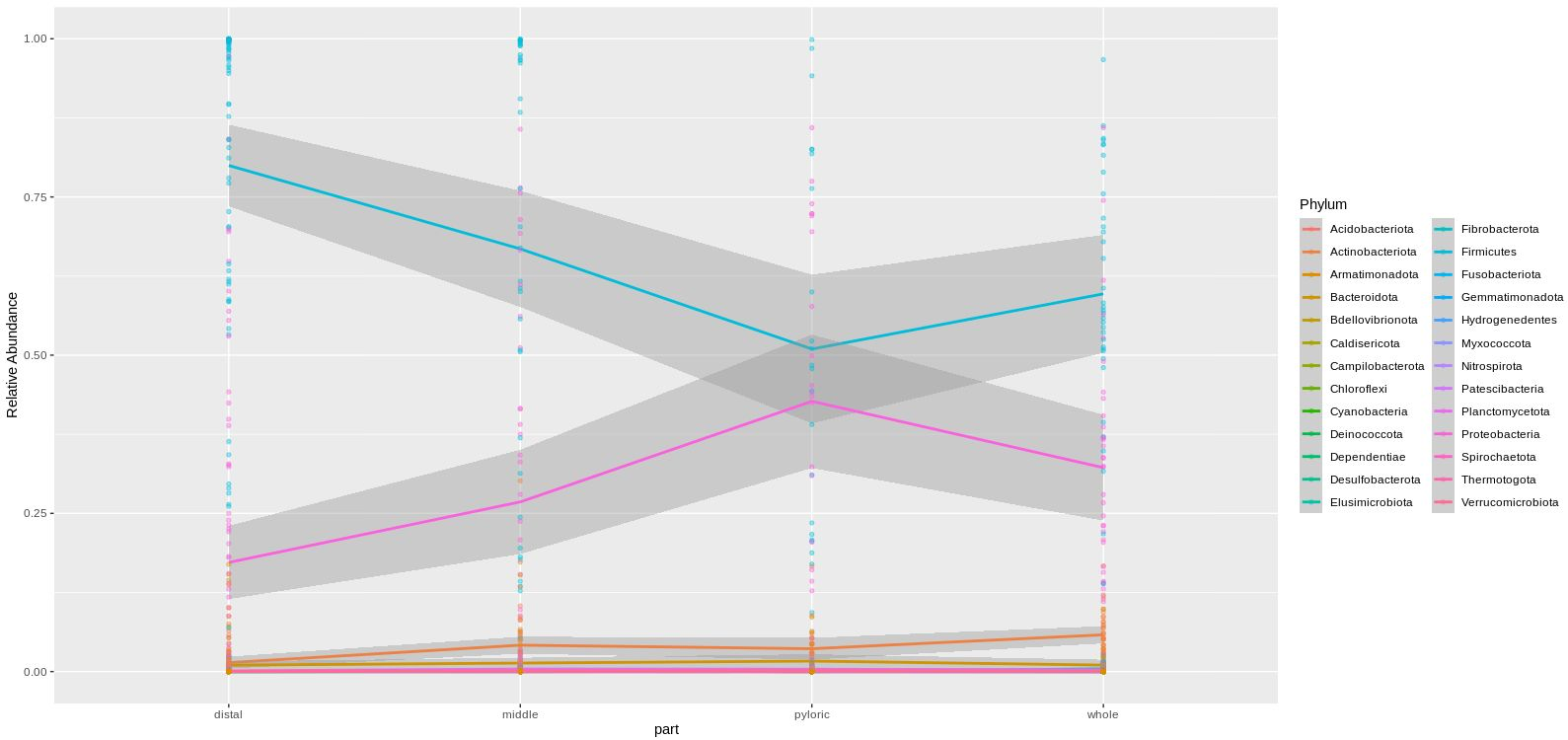 ggplot(ps_phylum, aes(x = part, y=Abundance, color = Phlyum, group = Phylum)) +