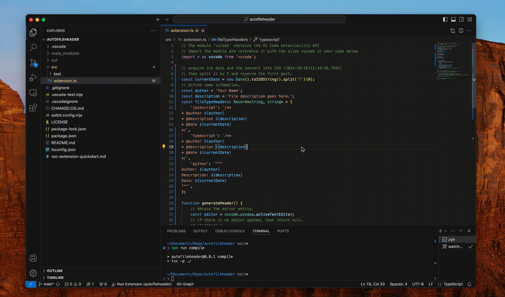 The autofileheader extension is designed to automatically generate file headers for various types of files. It offers customization options so that users can tailor the file headers to include essential information such as project name, author, creation date, and more. This enhances the readability and maintainability of files.