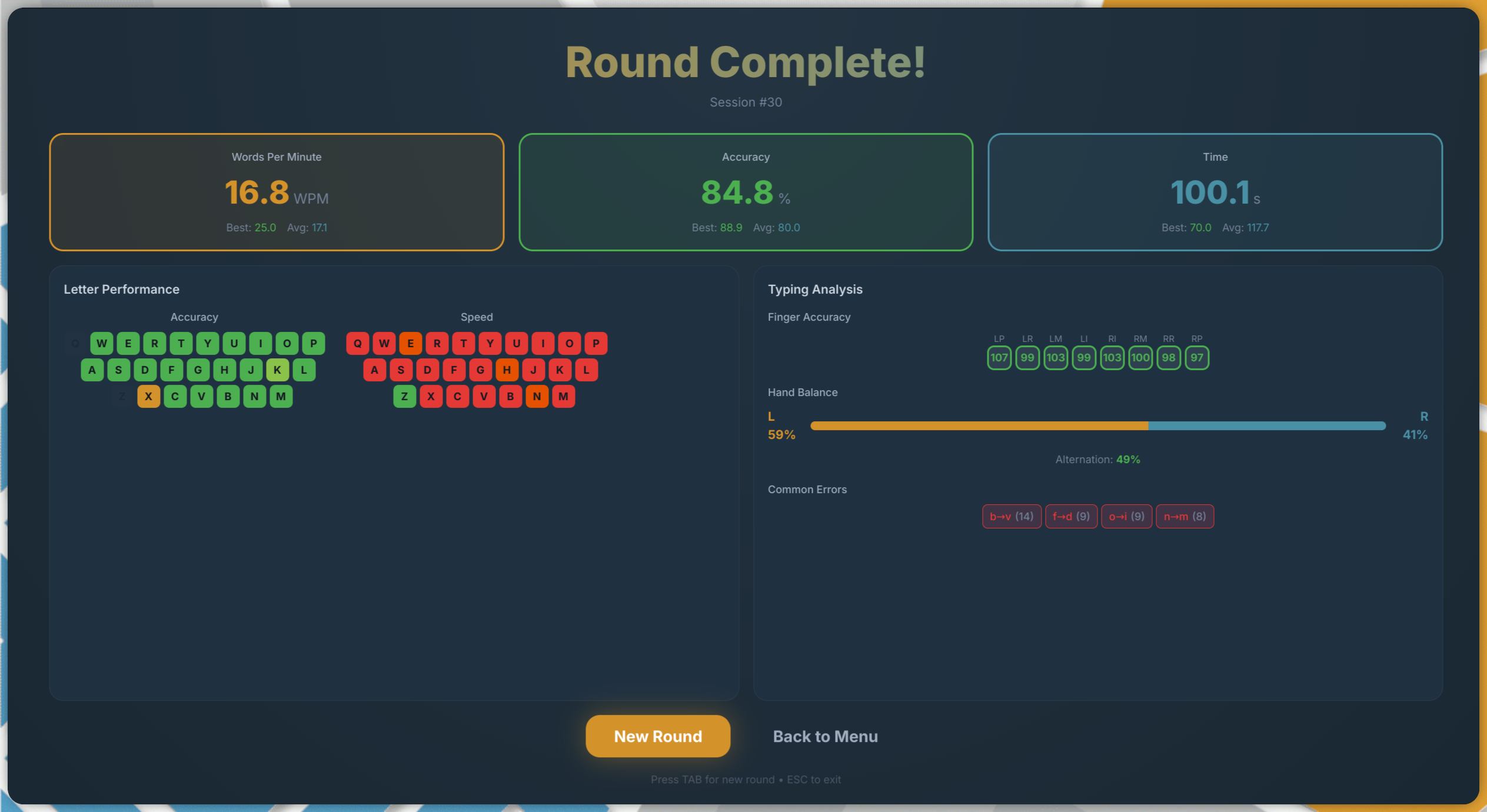 - Per-letter Statistics - See accuracy and speed for each letter A-Z