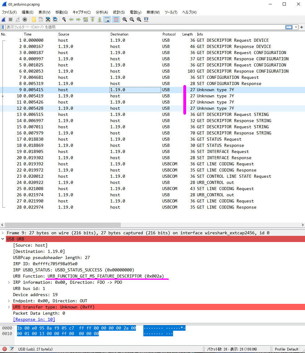 I fixed usb-cdc on windows 10. I'm not sure if this fix is correct. I have confirmed that when I connect pyportal / trinket-m0 on Windows 10, it is recognized as a USB serial device. However, I have only tested it on Windows 10, so I'm not sure it works on mac and linux. test code I think that URB_FUNCTION_GET_MS_FEATURE_DESCRIPTOR in the figure below was bad, but I don't know. |