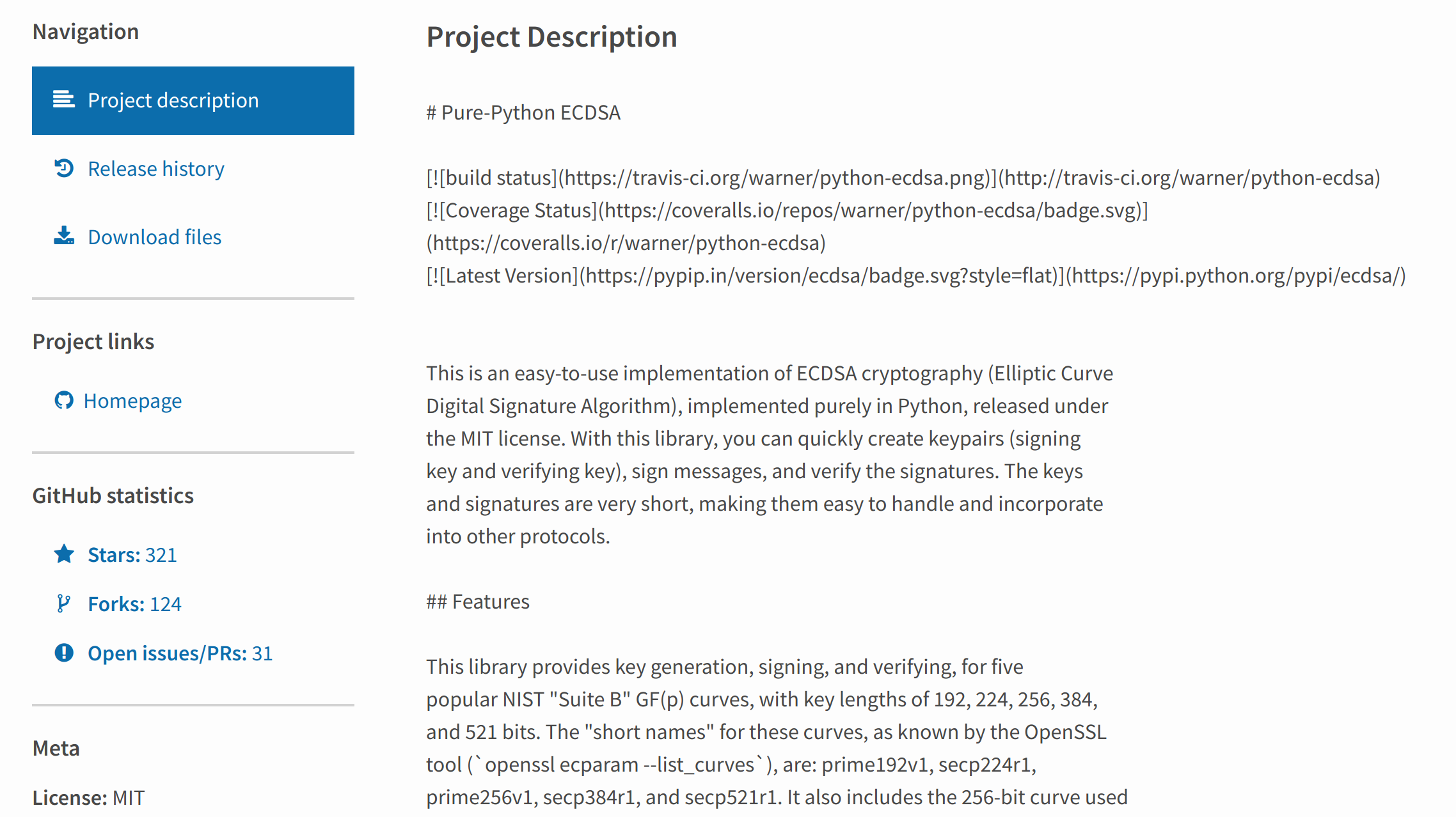 @di is this pull request necessary for PyPI to render the README as markdown? Note that https://github.com/warner/python-ecdsa/blob/ffe9a61390c76ff6f6636e29f26b45c900535aaf/MANIFEST.in#L2 If that's the case, will PyPI automatically use markdown formatting on the next release because of the |