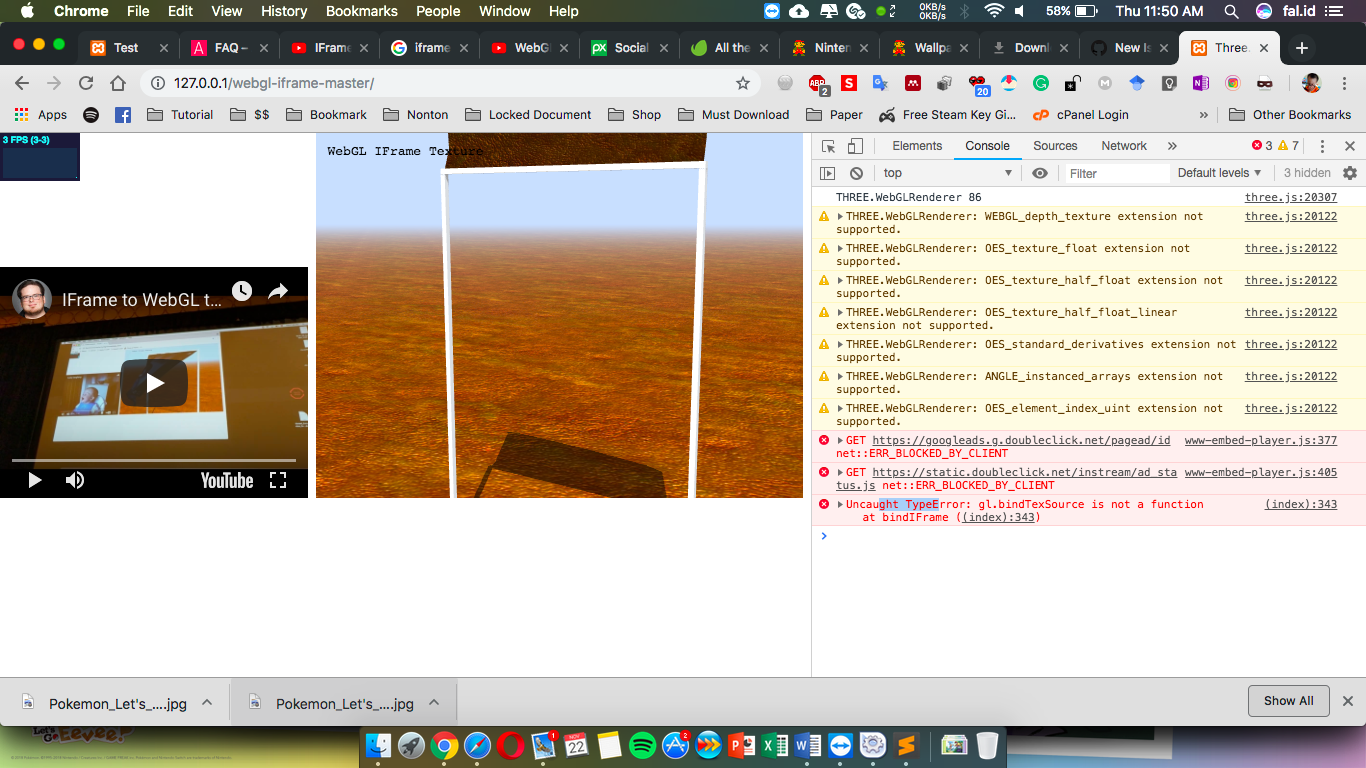 Uncaught TypeError: gl.bindTexSource is not a function at bindIFrame ((index):343)