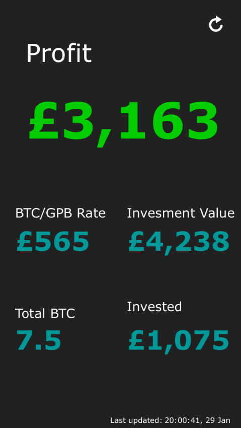 Tracking of Bitcoins investment with real time values and notifications