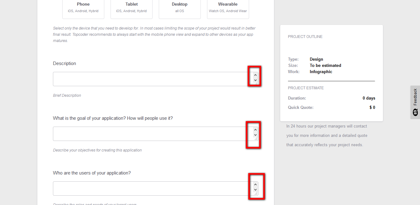 - In new Project page observeDescription,What is the goal of your application? How will people use it?Who are the users of your application? , text box
