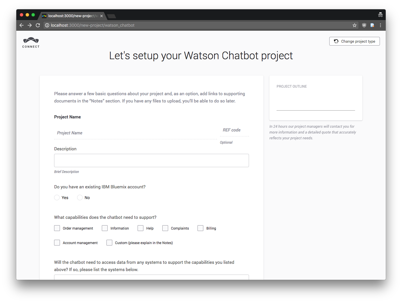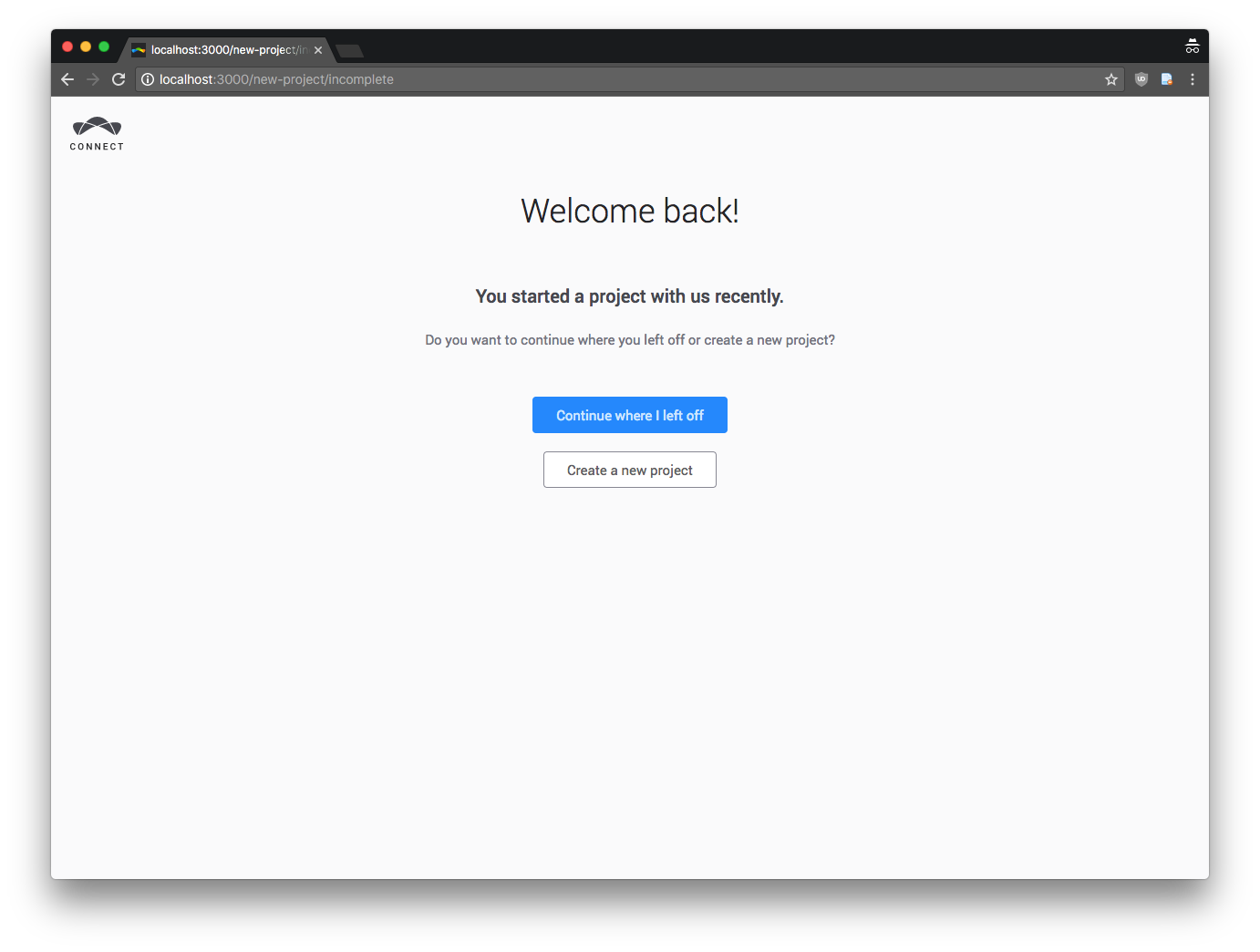 When a user has canceled a project creation and they go to a specific deep link (https://connect.topcoder.com/new-project/watson_chatbot) the system shows the correct "Unfinished screen"