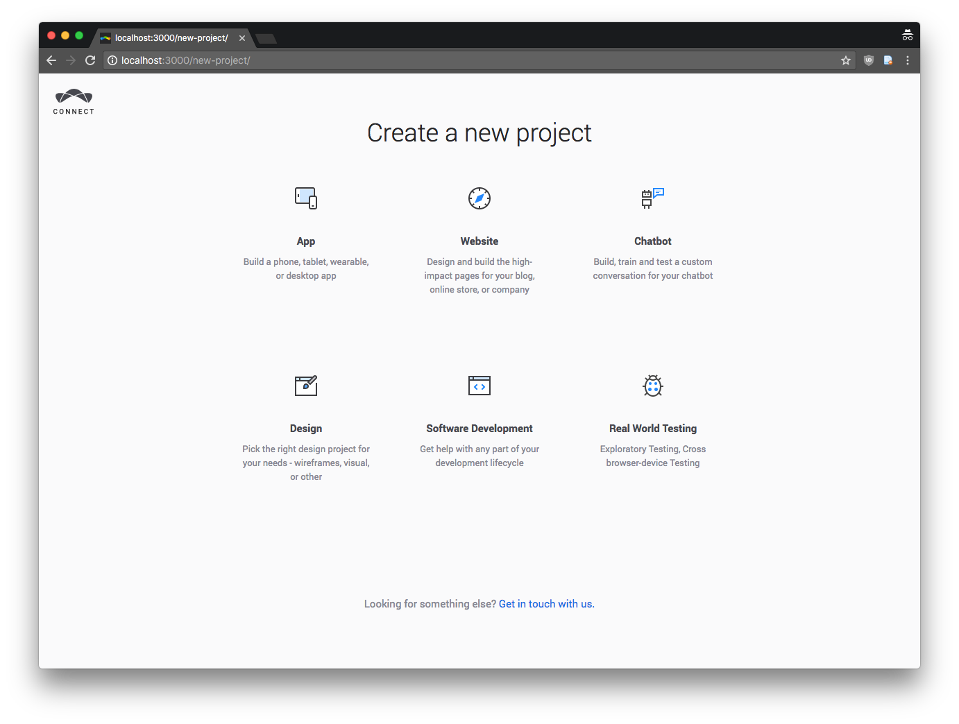 This is a new case for deep links only. The "Create a new project" should redirect to main screen if we don't have a request for a specific project creation form.