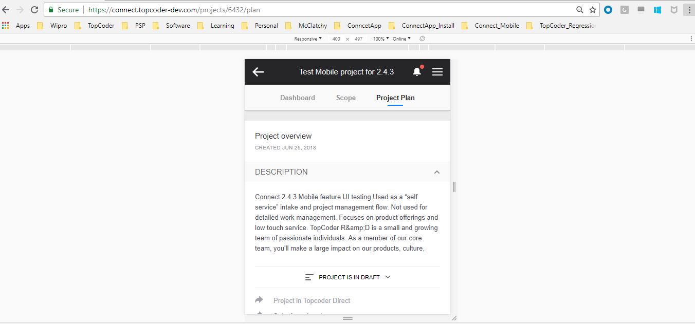 I have created new project in Mobile UI, I have compare the project plan with Mobile UI with web UI with same project.