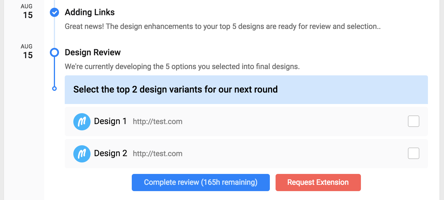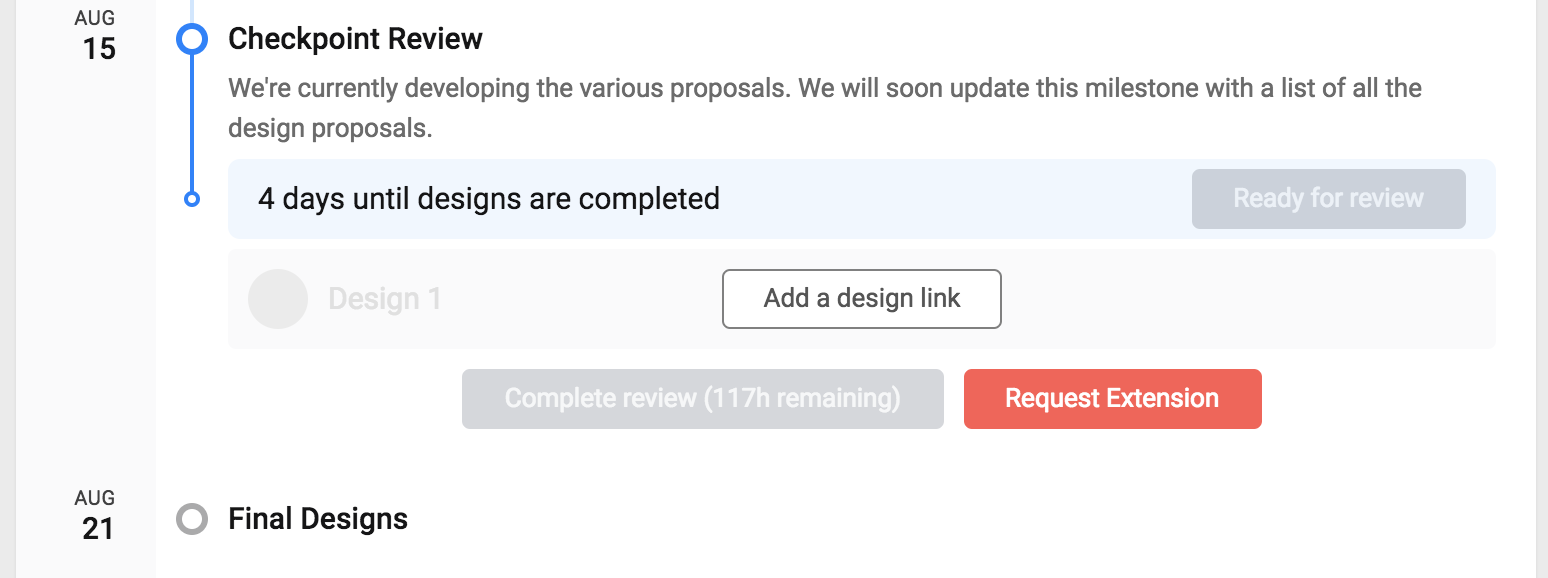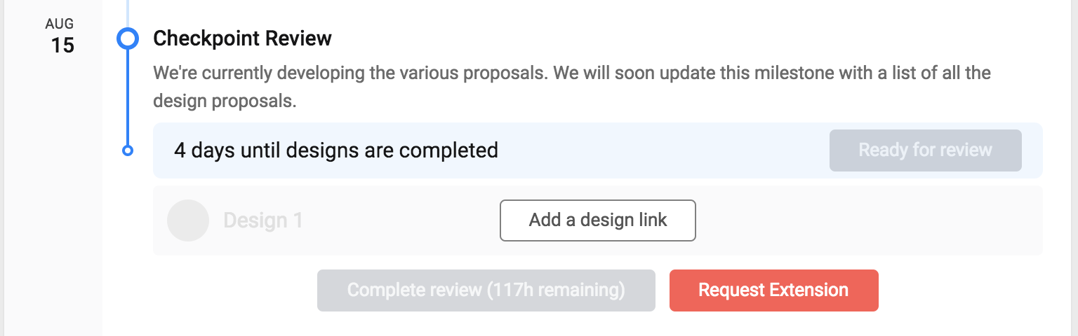 add-linksmilestones which goes beforecheckpoint-revieworfinal-designs. And insidecheckpoint-reviewandfinal-designsmilestones we only choose the winners, but cannot add links. It looks like this: