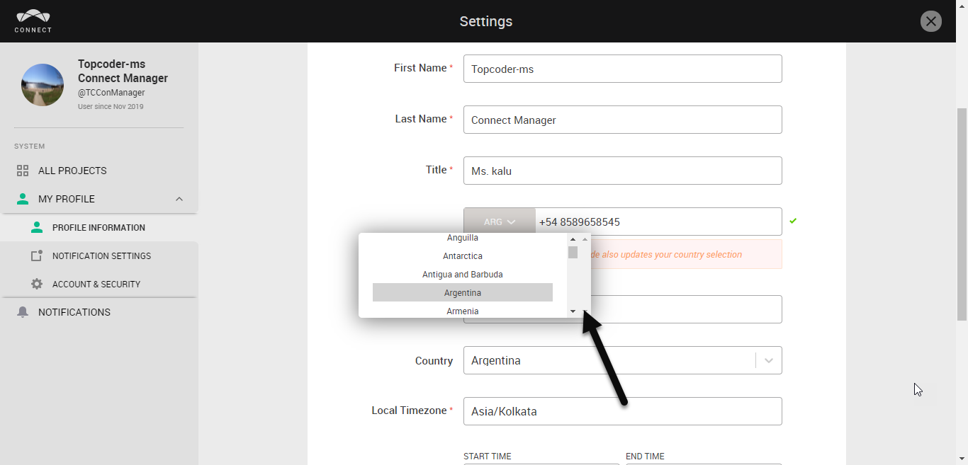 - As this list of countries is shown using our reusable dropdown component. We should reuse the scrollbar of the dropdown and don't implement another scrollbar if possible.