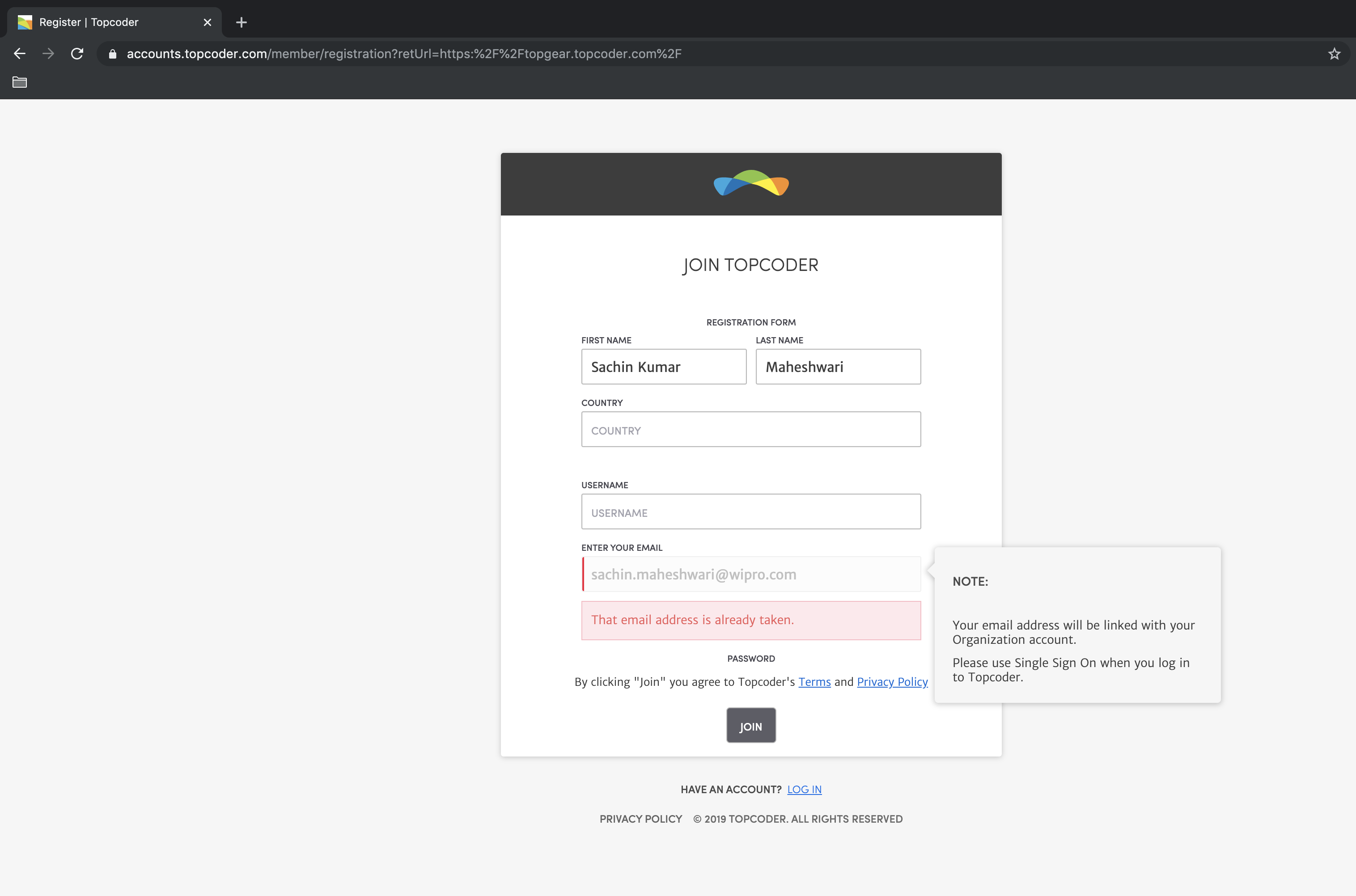 SSO user unable to login, redirecting to registration page and when user trying to register, getting error "That email address is already taken".