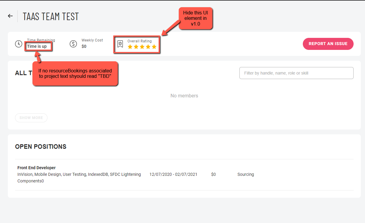 In the scenario that there are no resourceBookings on a team yet, the Time Remaining should read "TBD"