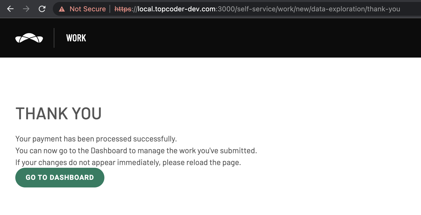 Payment now goes through and user is redirected to Thank You page after a successful payment: